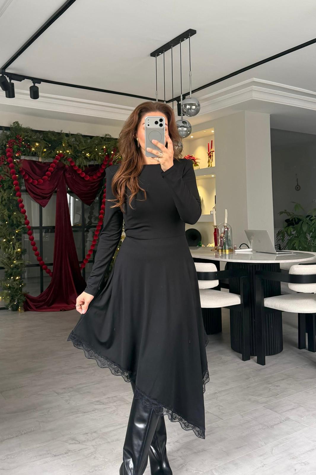 VATKALI ROMANTİK MİDİ ELBİSE/1289 (26KMNM0302)