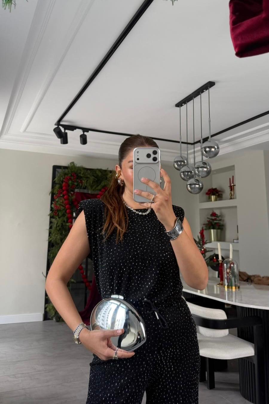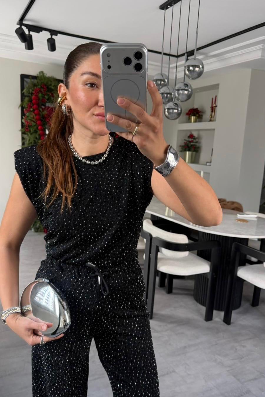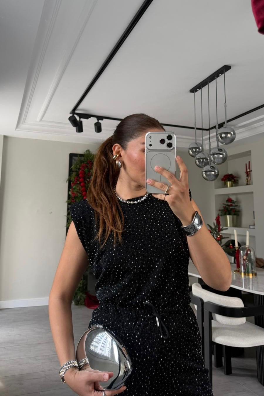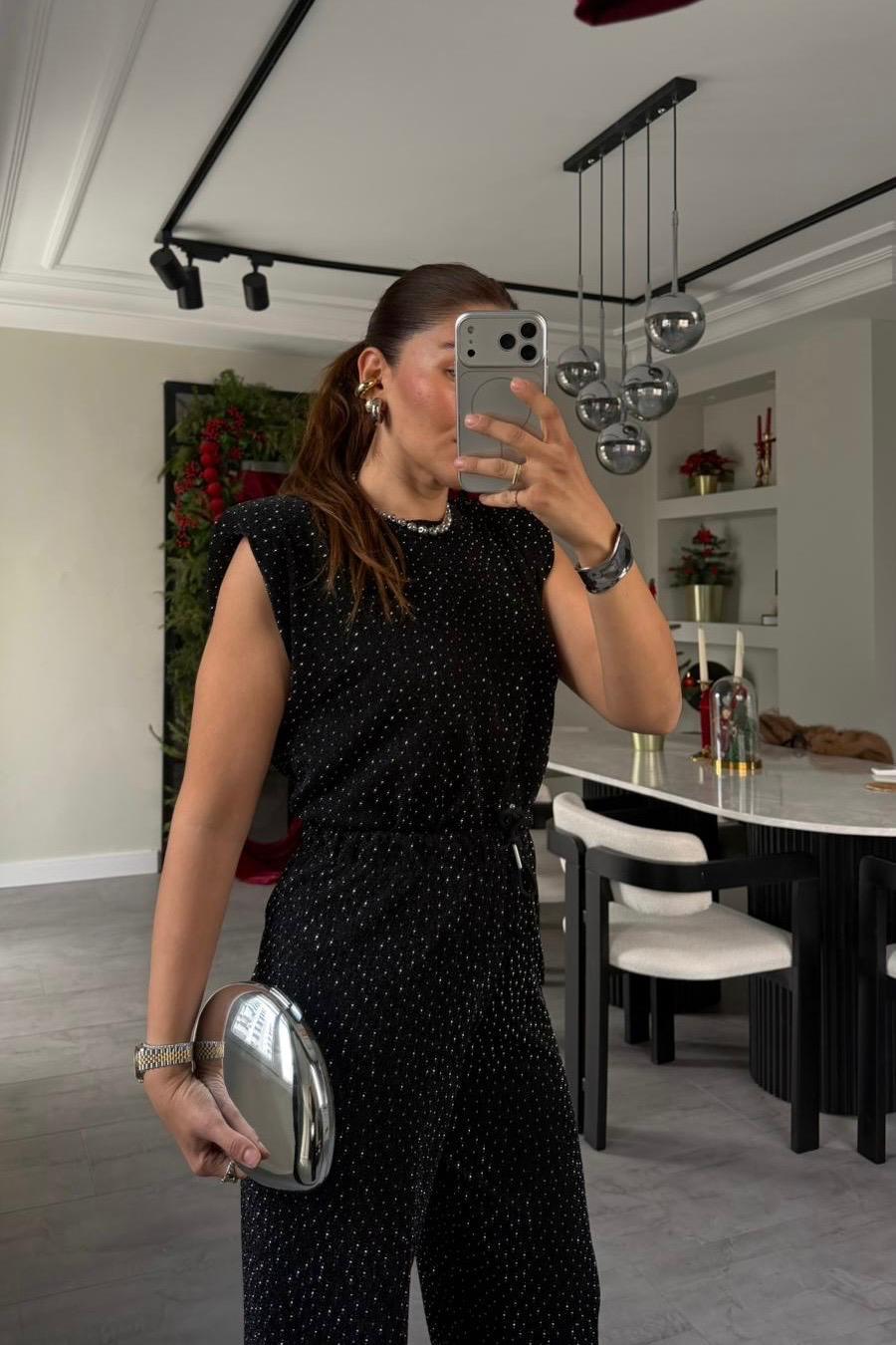 VATKALI TAŞLI KOLSUZ BLUZ/29414
