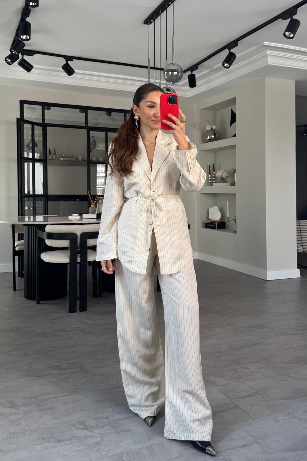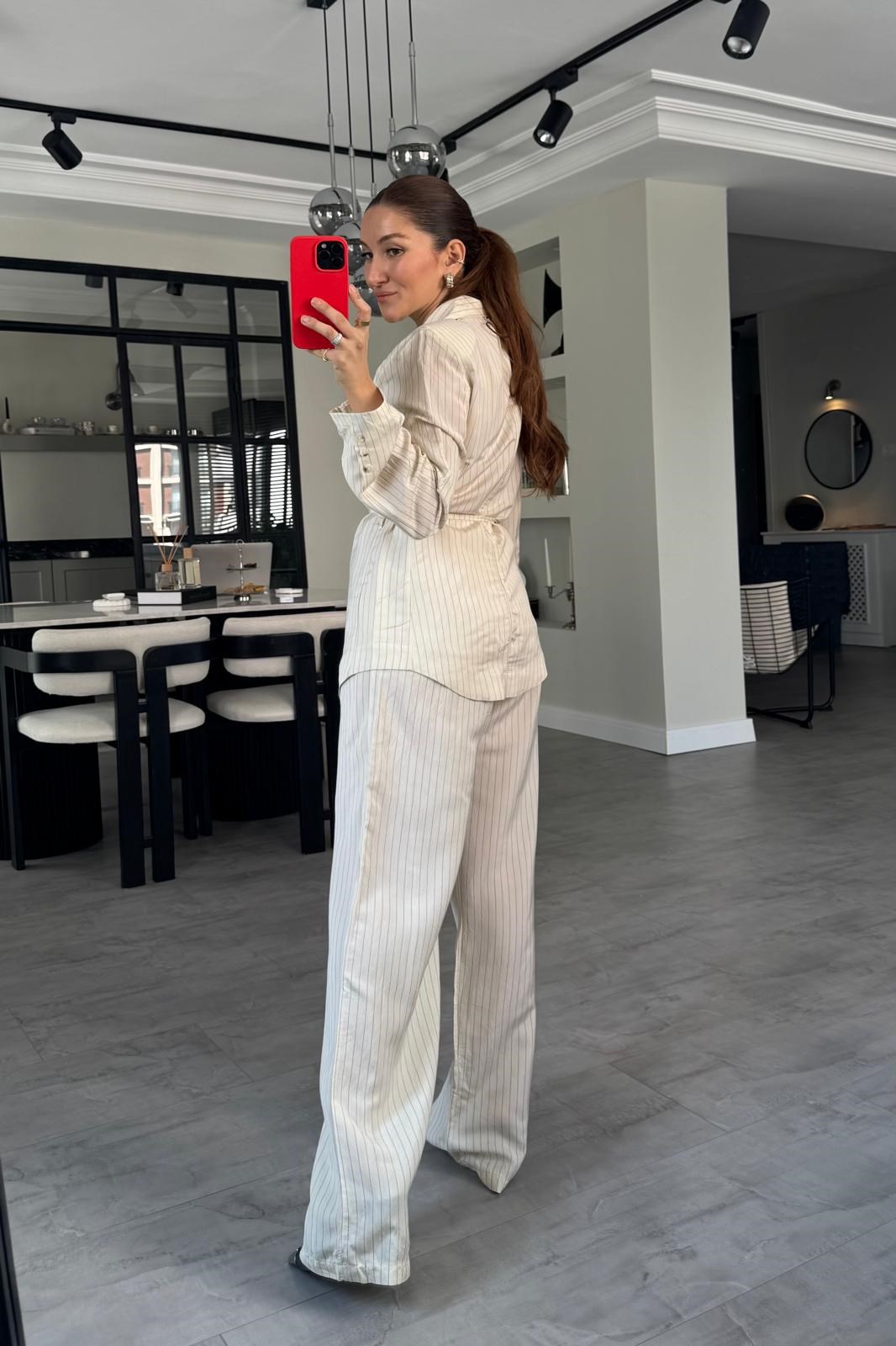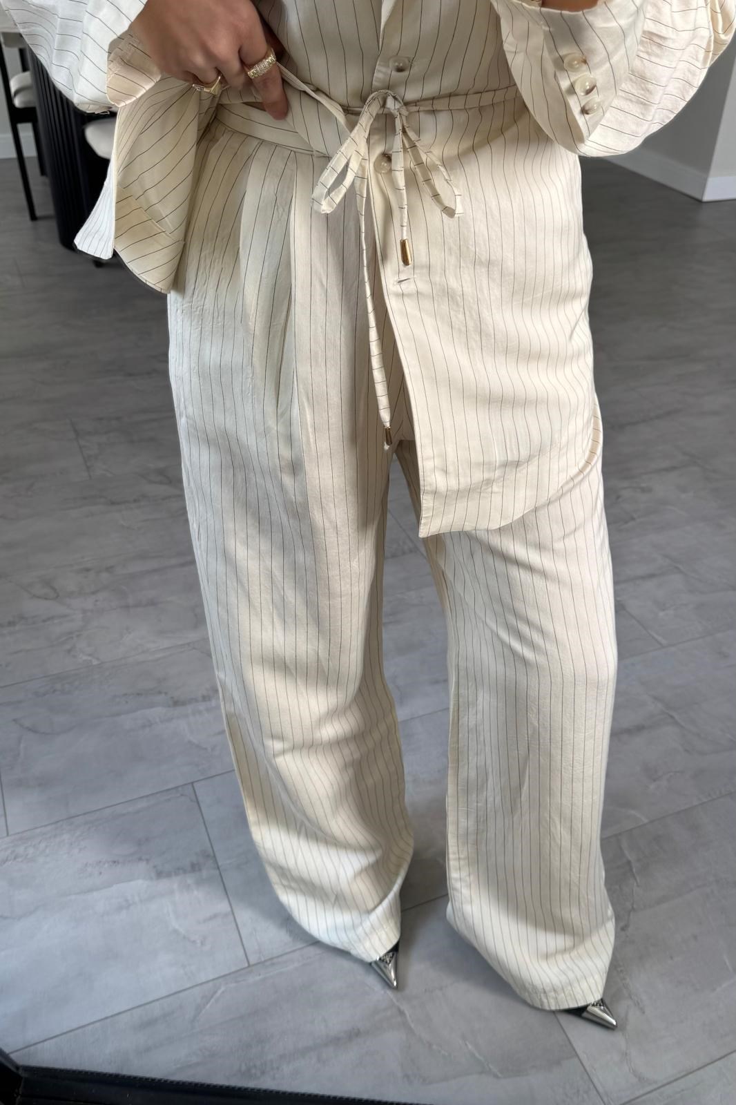 YANDAN FERMUARLI ÇİZGİLİ PALAZZO PANTOLON/1372 (26YQZ01006)
