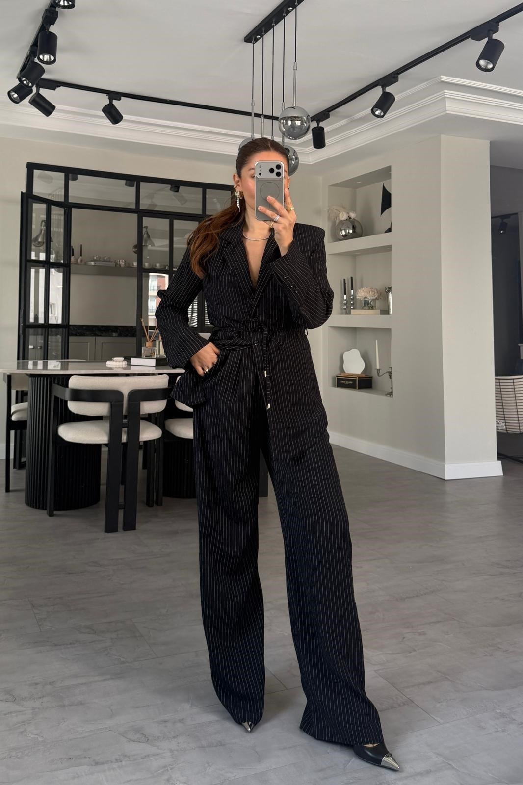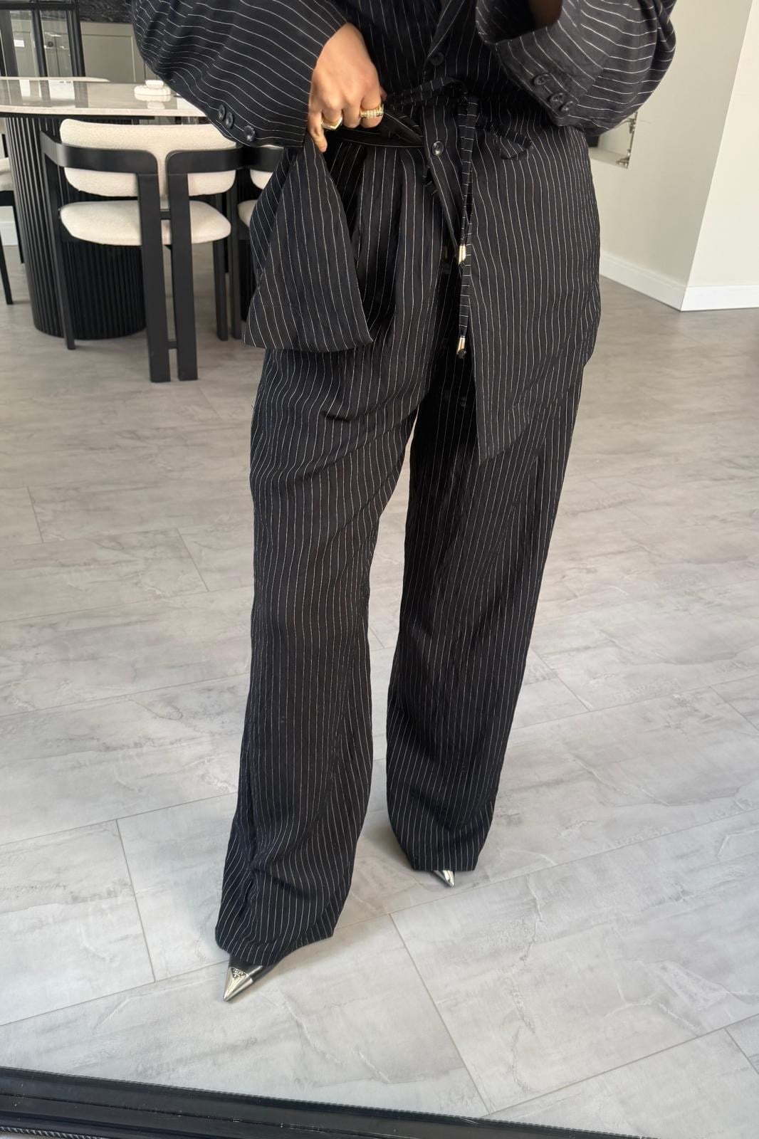 YANDAN FERMUARLI ÇİZGİLİ PALAZZO PANTOLON/1372 (26YQZ01006)