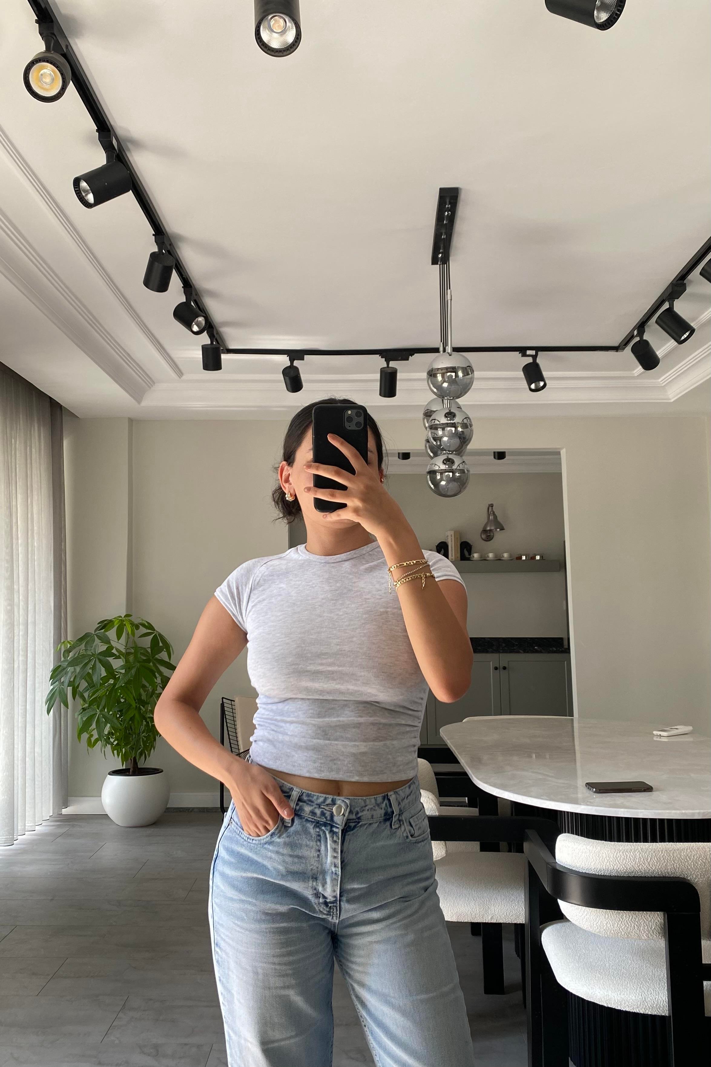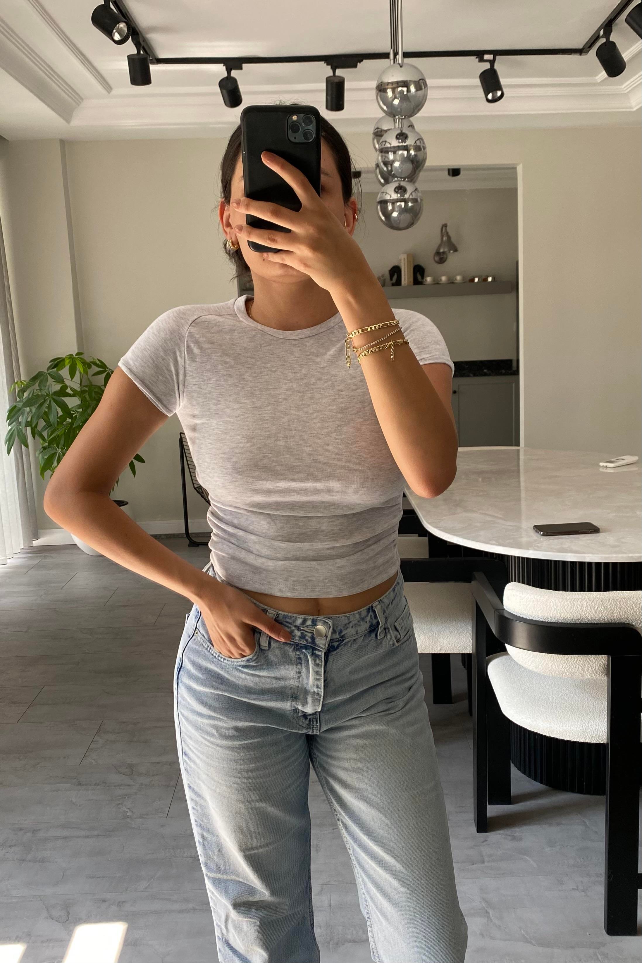 YANI BÜZGÜLÜ DÜŞÜK KOL T-SHİRT/3664 YANI BÜZGÜLÜ DÜŞÜK KOL T-SHİRT/3664