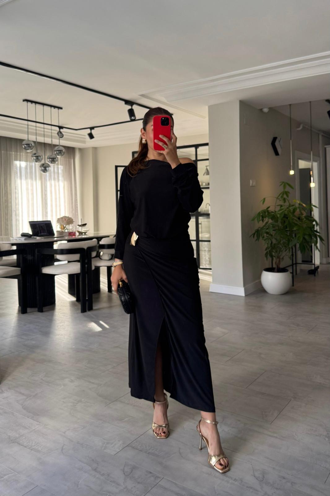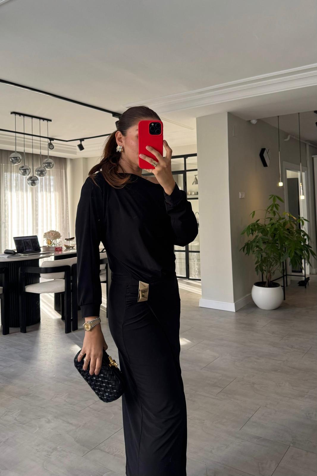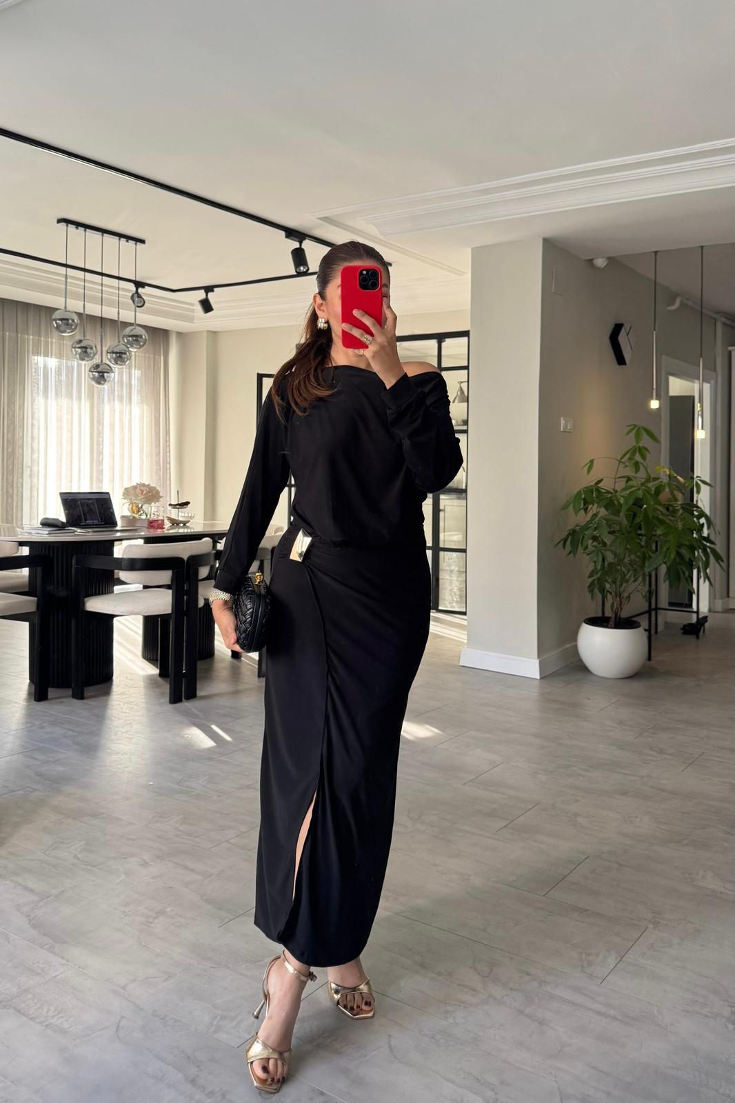YARASA KOL BELİ TOKALI MAKSİ ELBİSE/2021