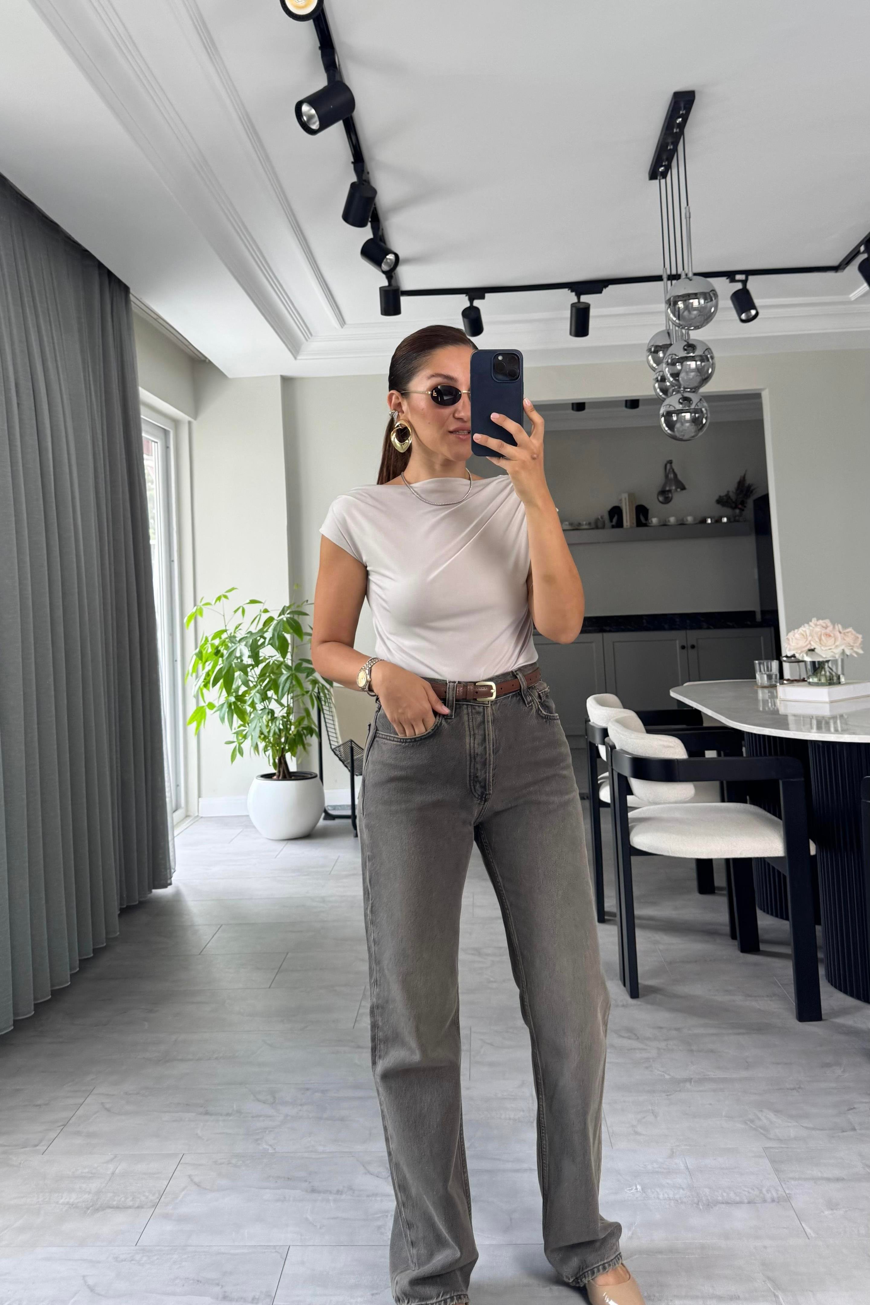 YARIM KOL DÖKÜMLÜ BLUZ/0637 (25YWSO1701)