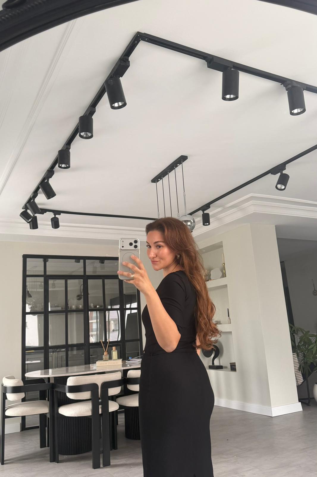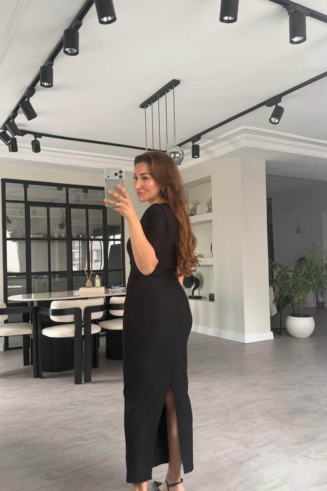 YARIM KOL KARE YAKA KEMERLİ ELBİSE/1271 (26KMNM0303)