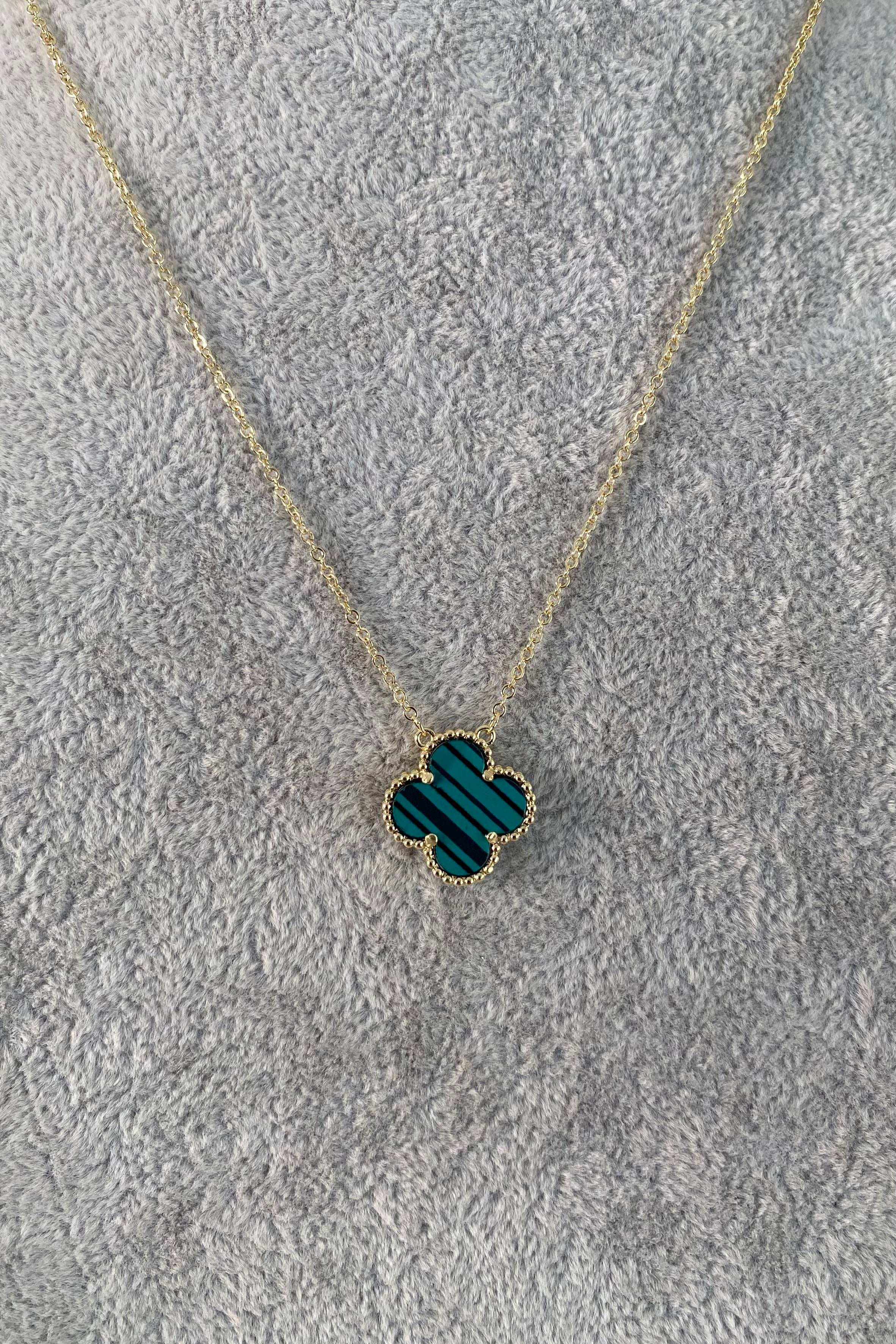 YEŞİL ÇİZGİ PLAKA YONCA KOLYE
