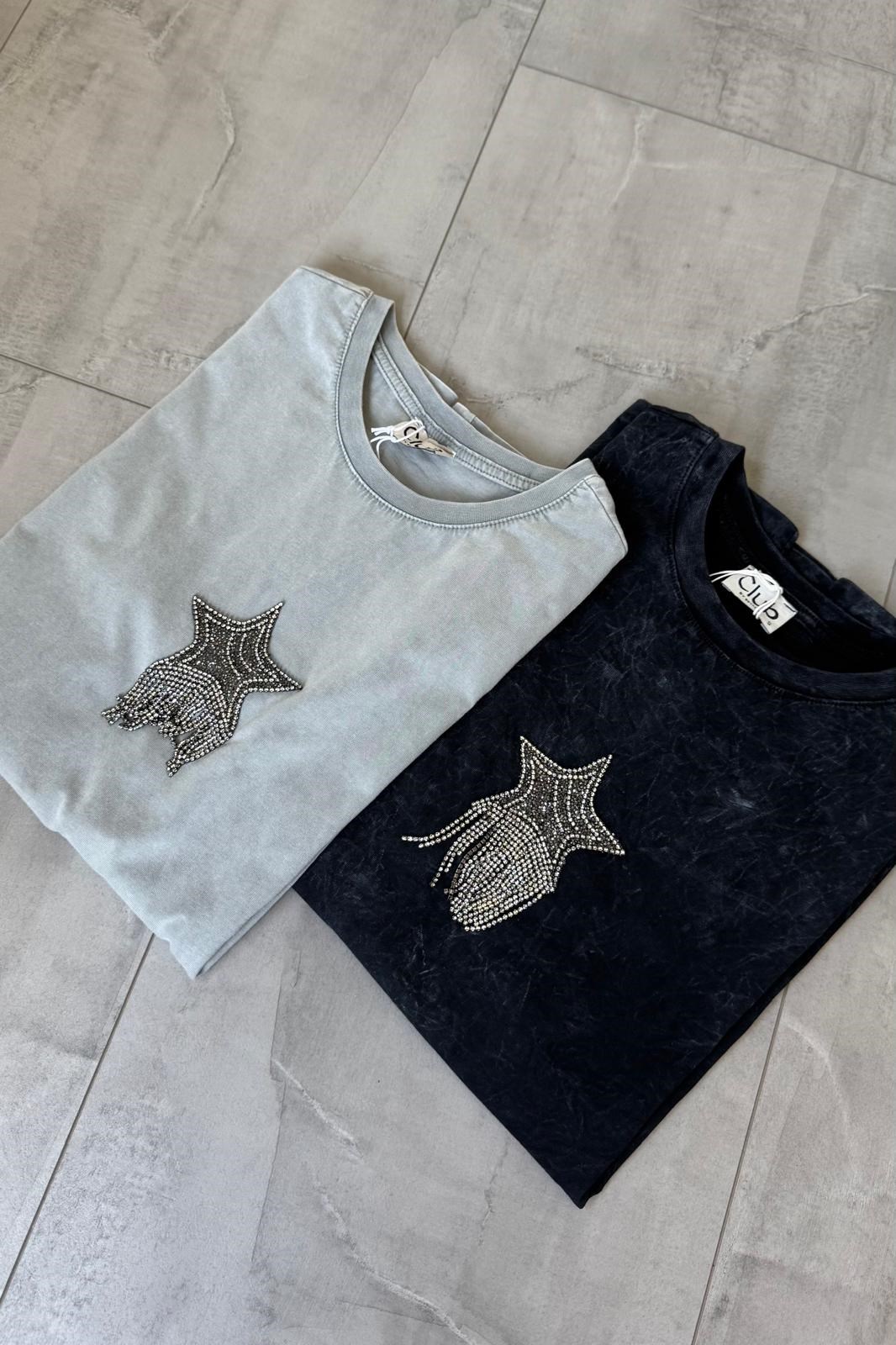 YIKAMALI YILDIZ TAŞLI T-SHIRT