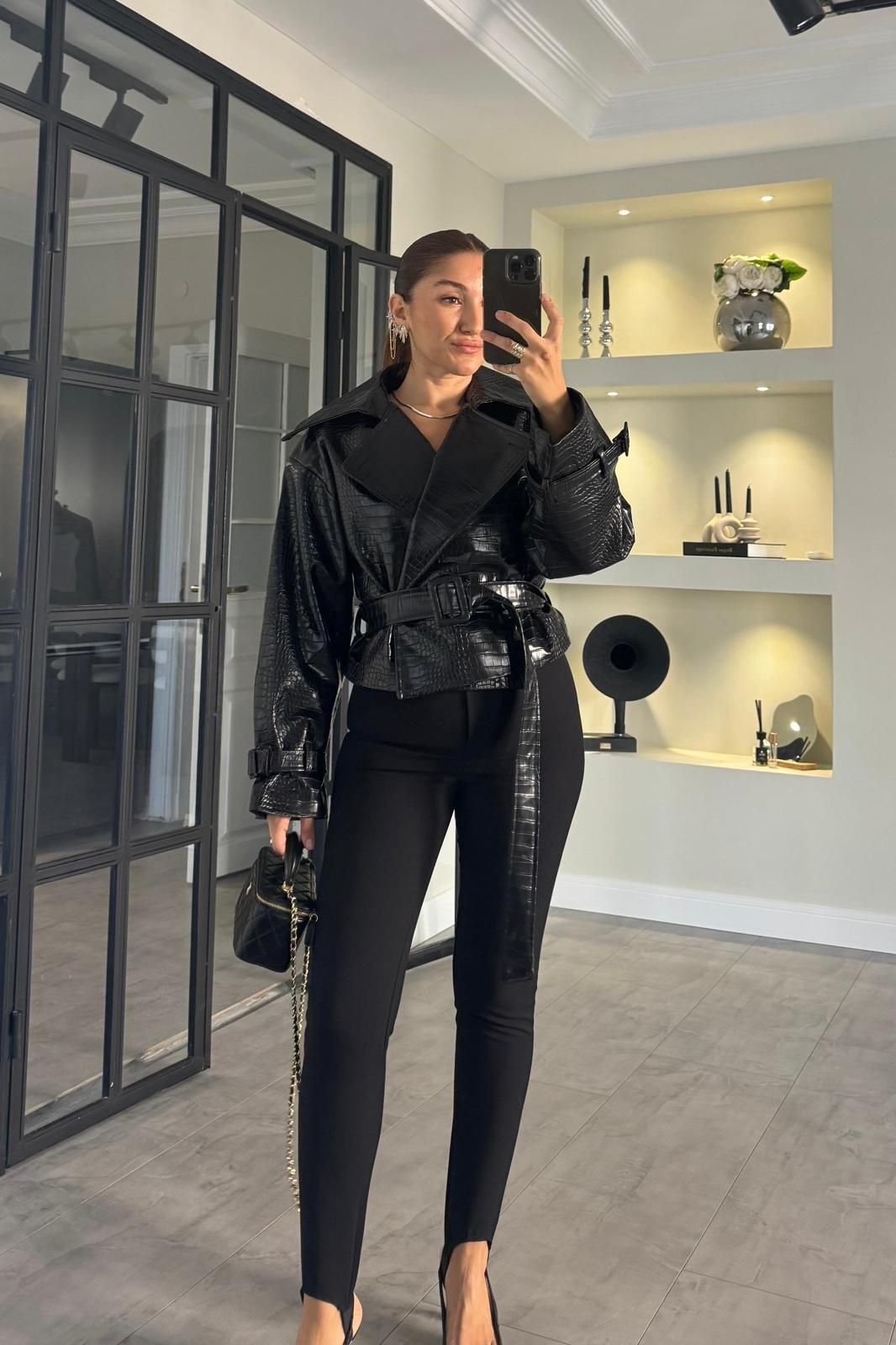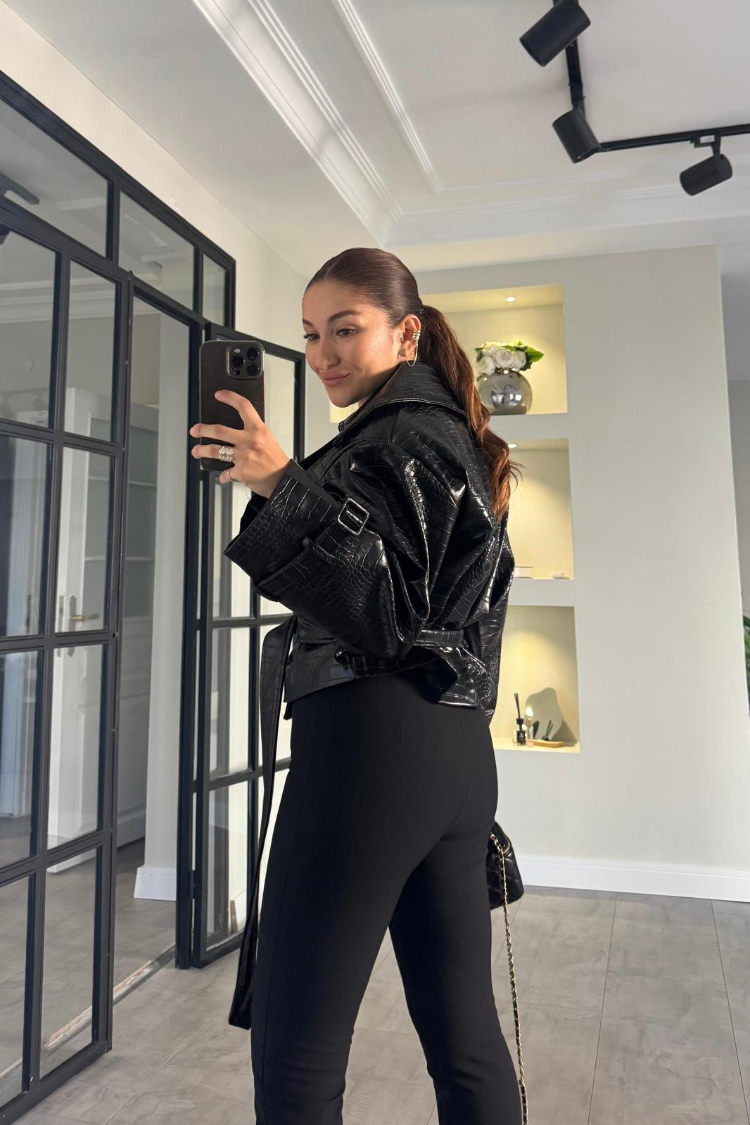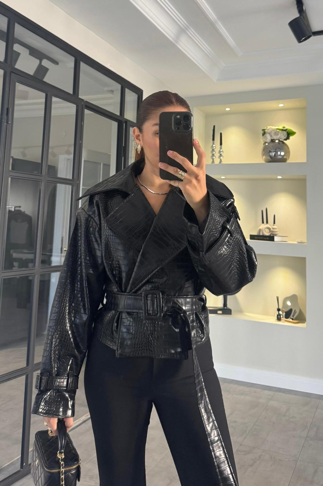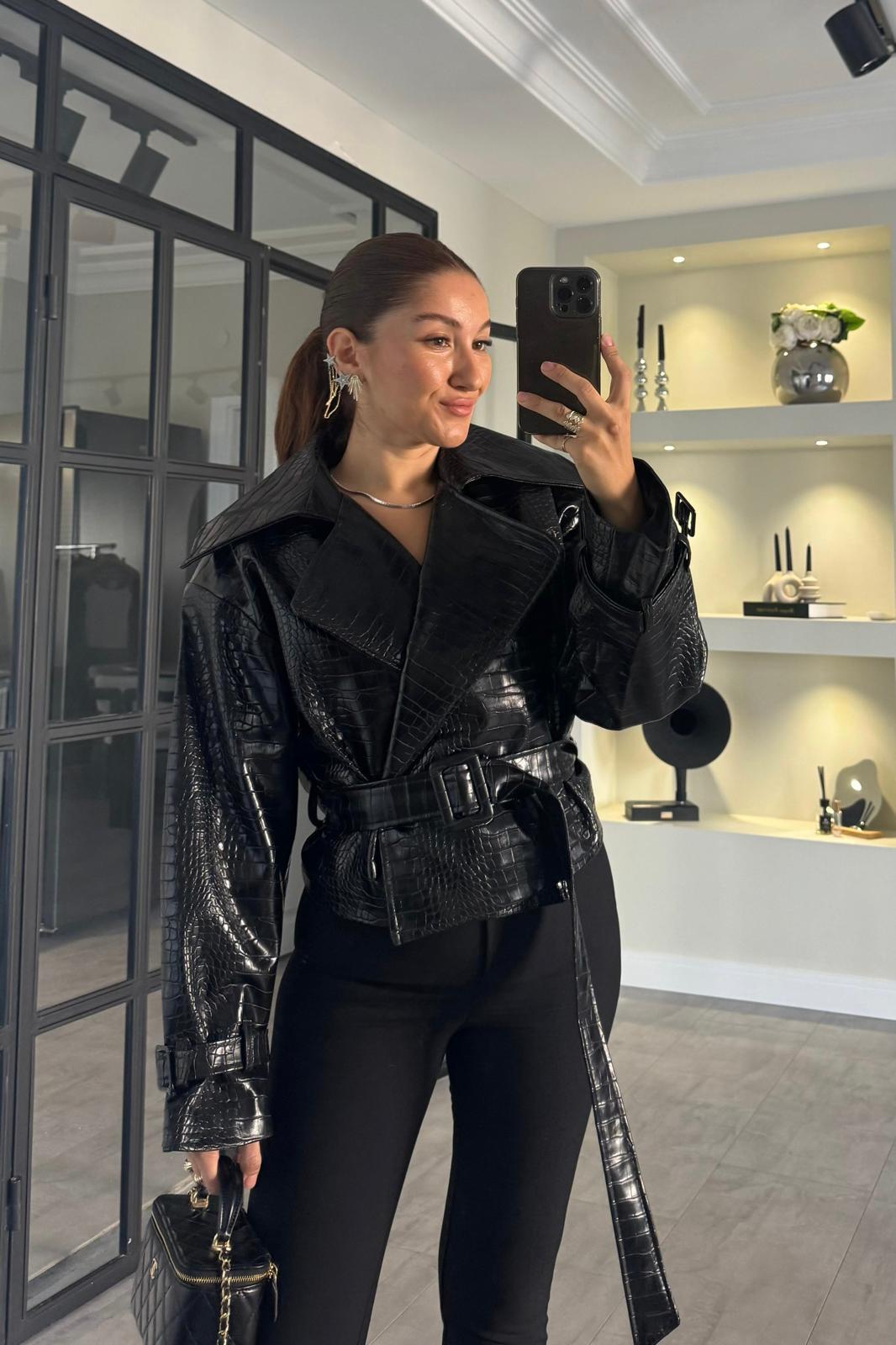 YILAN DESENLİ DERİ CEKET/9632