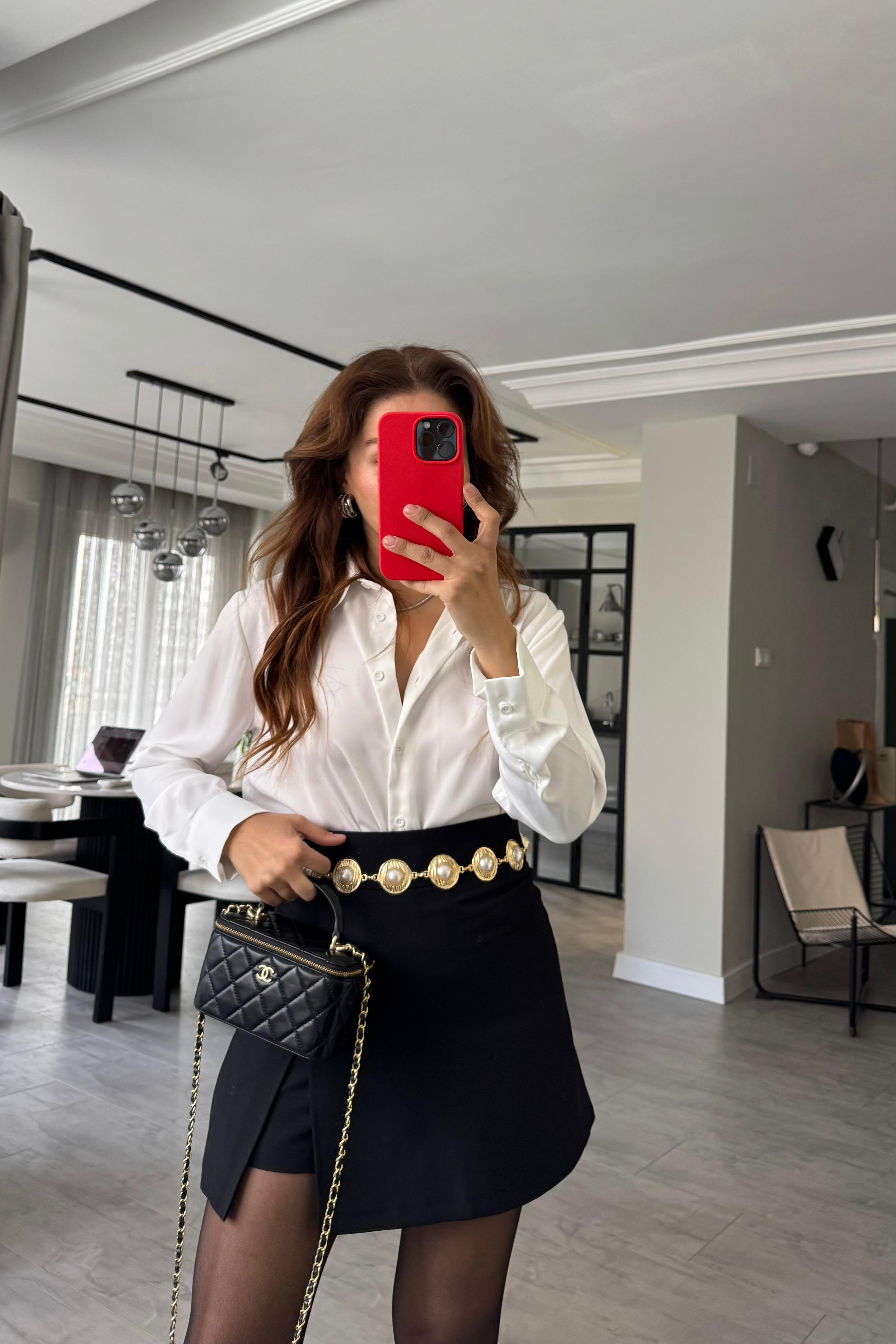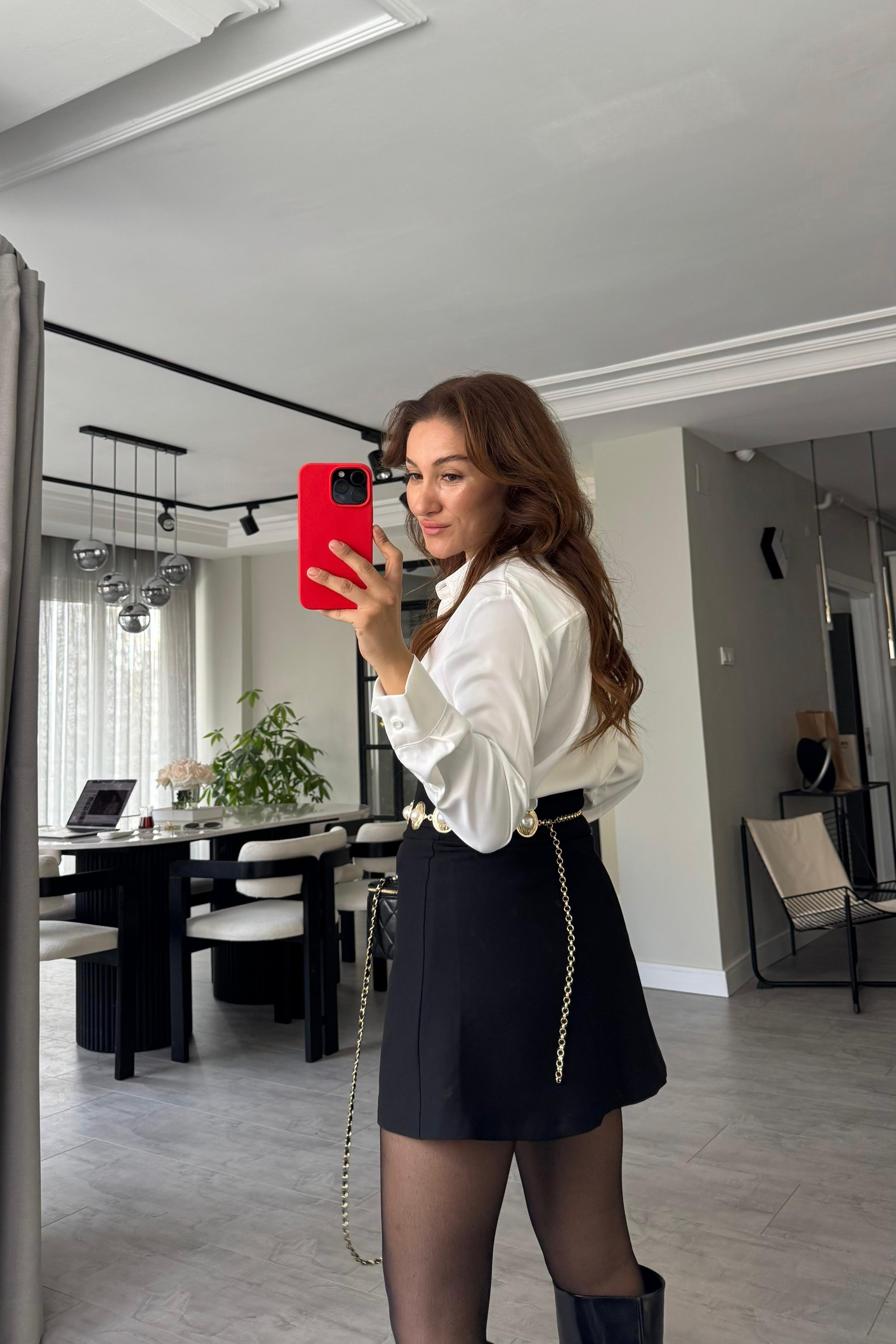 YÜKSEK BEL YIRTMAÇLI ŞORT ETEK/5179