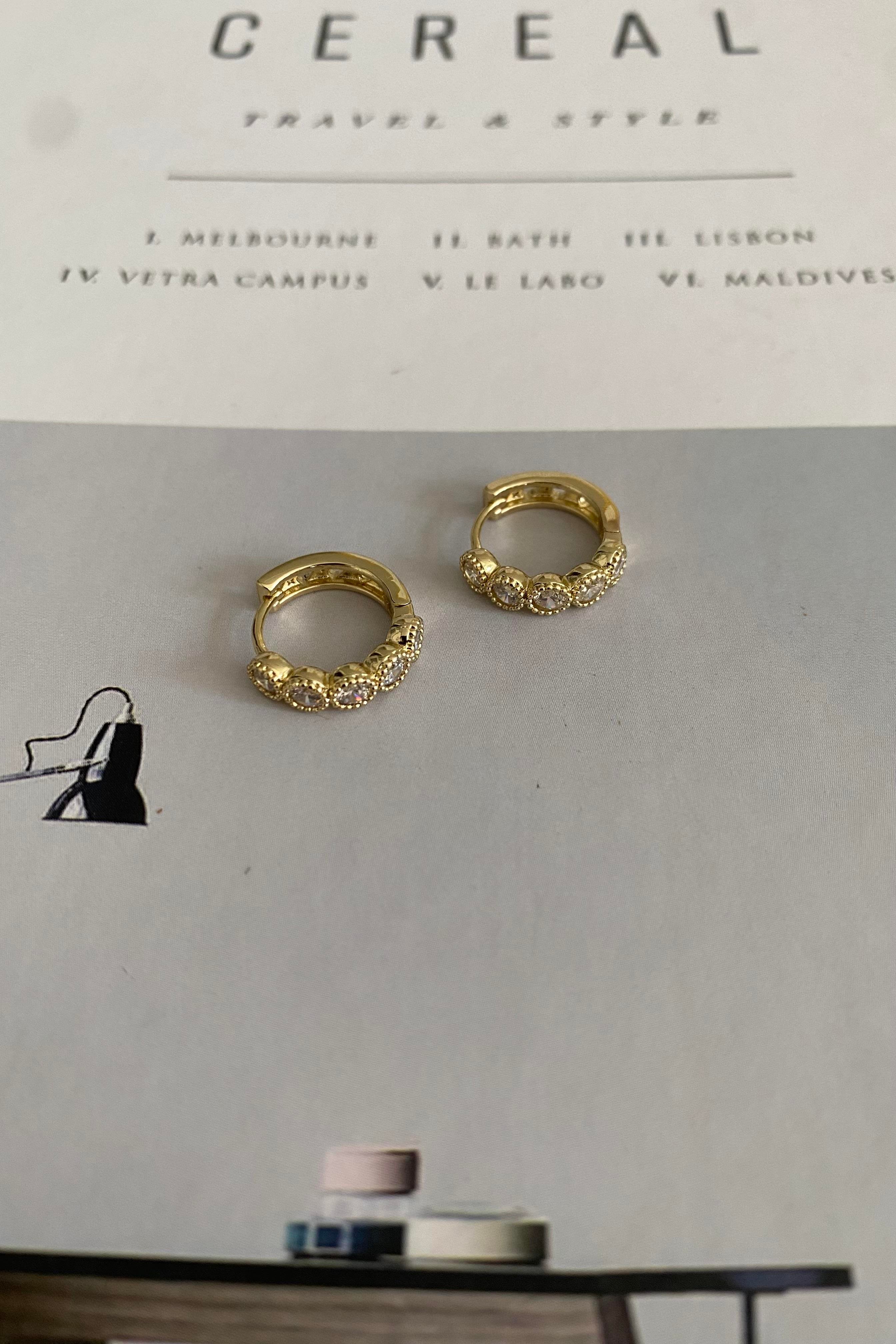 YUVARLAK TAŞ ÇERÇEVELİ HALKA KÜPE