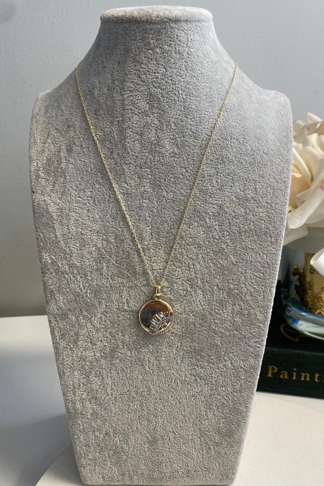 ZİRKON GÖZ DETAYLI PLAKA KOLYE 45cm (25GFB12066)