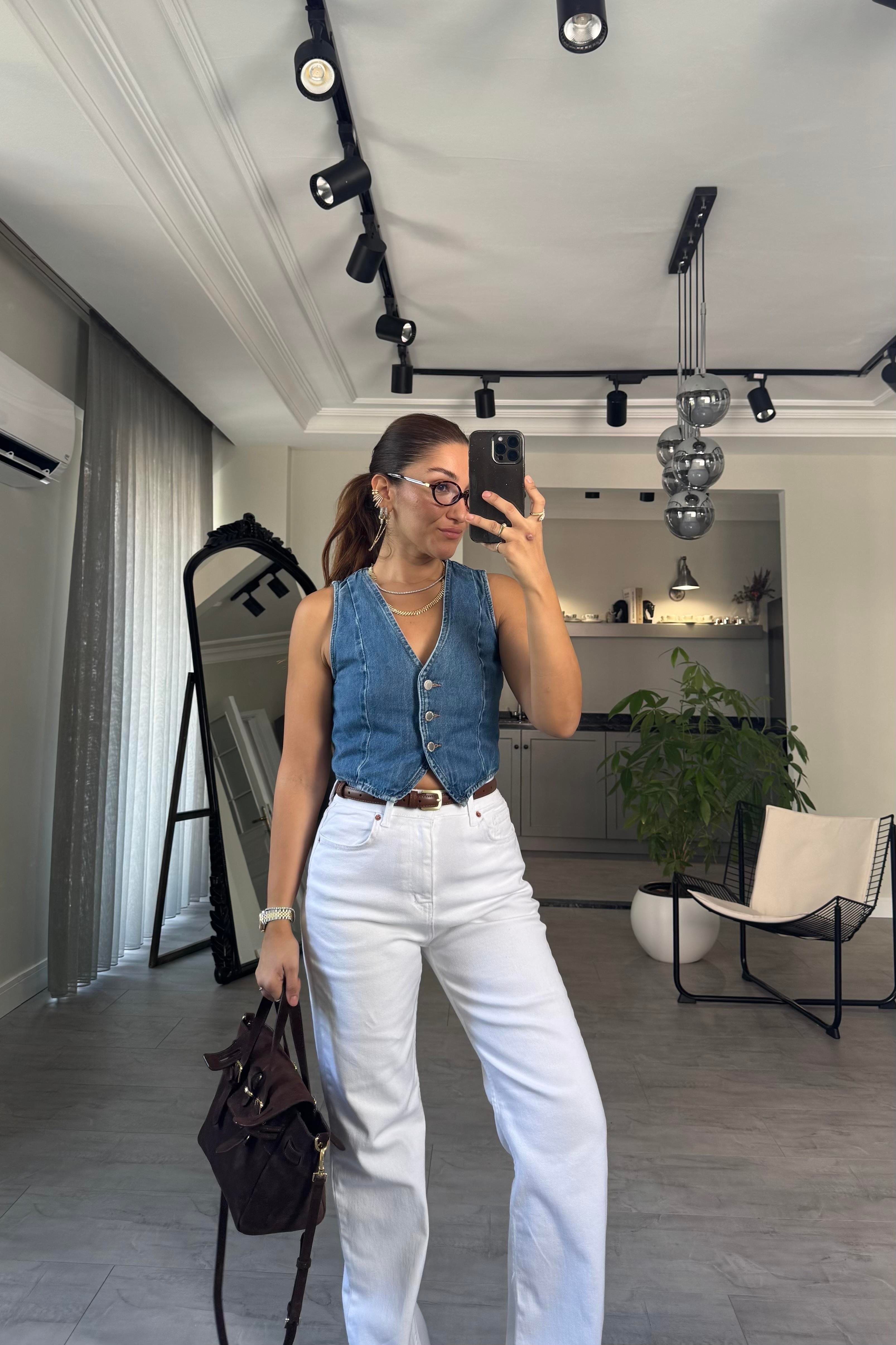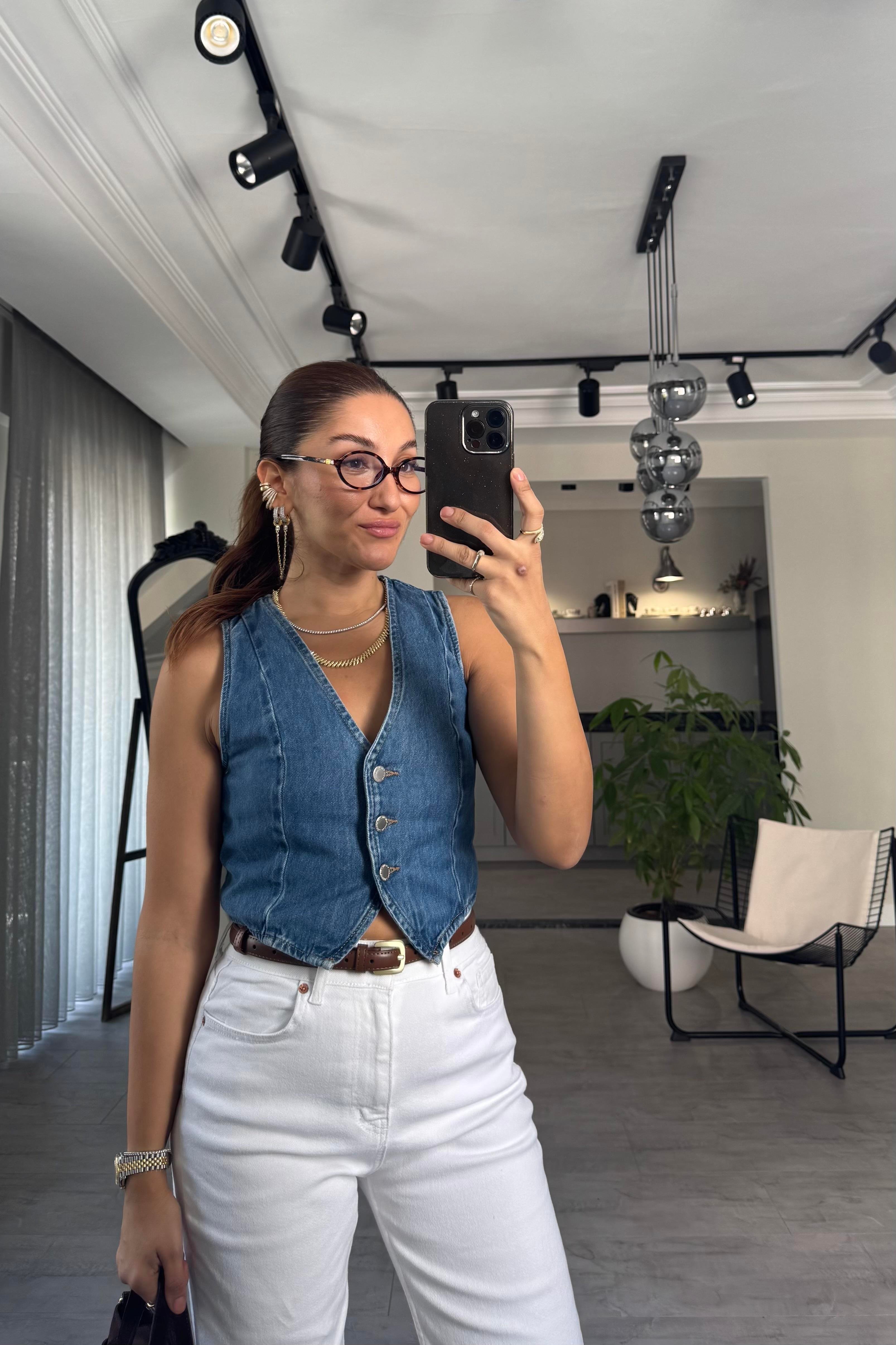 ZR DÜĞMELİ DENİM YELEK